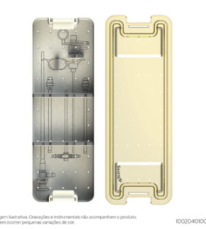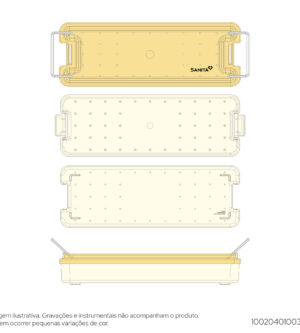 Used to accommodate instruments orthopedics and arthroscopy.Internal dimensions:330mm x 250mm x 80mmExternal dimensions:400mm x 280mm x 108mm